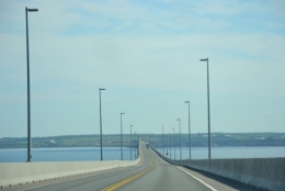 Le Pont qui mène aux P.E Islands (Pont de la Confédération) est tout bonnement gigantesque ! Imaginez plus de 13km de long, large de 11m (4 voies) jeté au dessus de l'eau, je pense qu'on est pas loin du record mondial pour un ouvrage maritime. La vitesse est limitée et le vent souffle heureusement modérément. L'impression est incroyable on a presque le sentiment de voler en rase-mottes au dessus du Golfe du Saint Laurent !